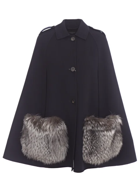 Детали: традиционный крой, отложной воротник, прорези для рук, на плечевых швах погоны с пуговицами, большие карманы с отделкой из меха. Застегивается рядом пуговиц.