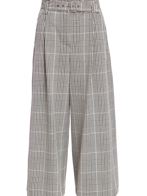 Детали: прямой свободный от бедра крой, высокая посадка, французские боковые карманы, сзади два прорезных с рантом, симметричные защипы, пояс с пряжкой.