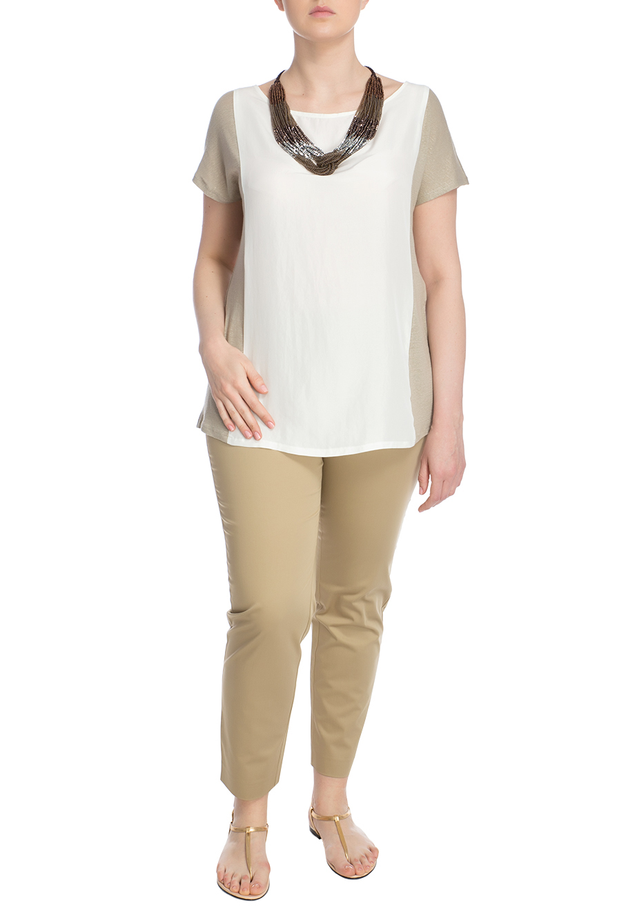 Детали: прямой крой, зауженный книзу, высокая посадка, на поясе эластичная вставка сзади, стрелки вдоль штанин, длина по щиколотку, боковые разрезы.