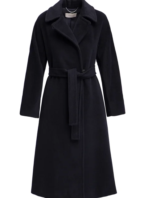 Детали: прямой крой под пояс, отложной воротник с лацканами, длинный втачной рукав, прорезные карманы по боковым швам, пояс по линии талии, отделка кромки ручным стежком.