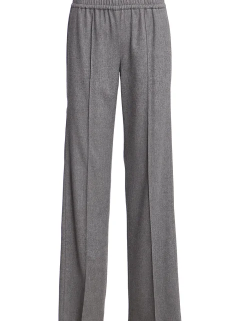Детали: прямой свободный от бедра крой, высокая посадка, пояс на кулиске с резинкой, прорезные карманы по боковым швам, прошитые стрелки вдоль штанин.