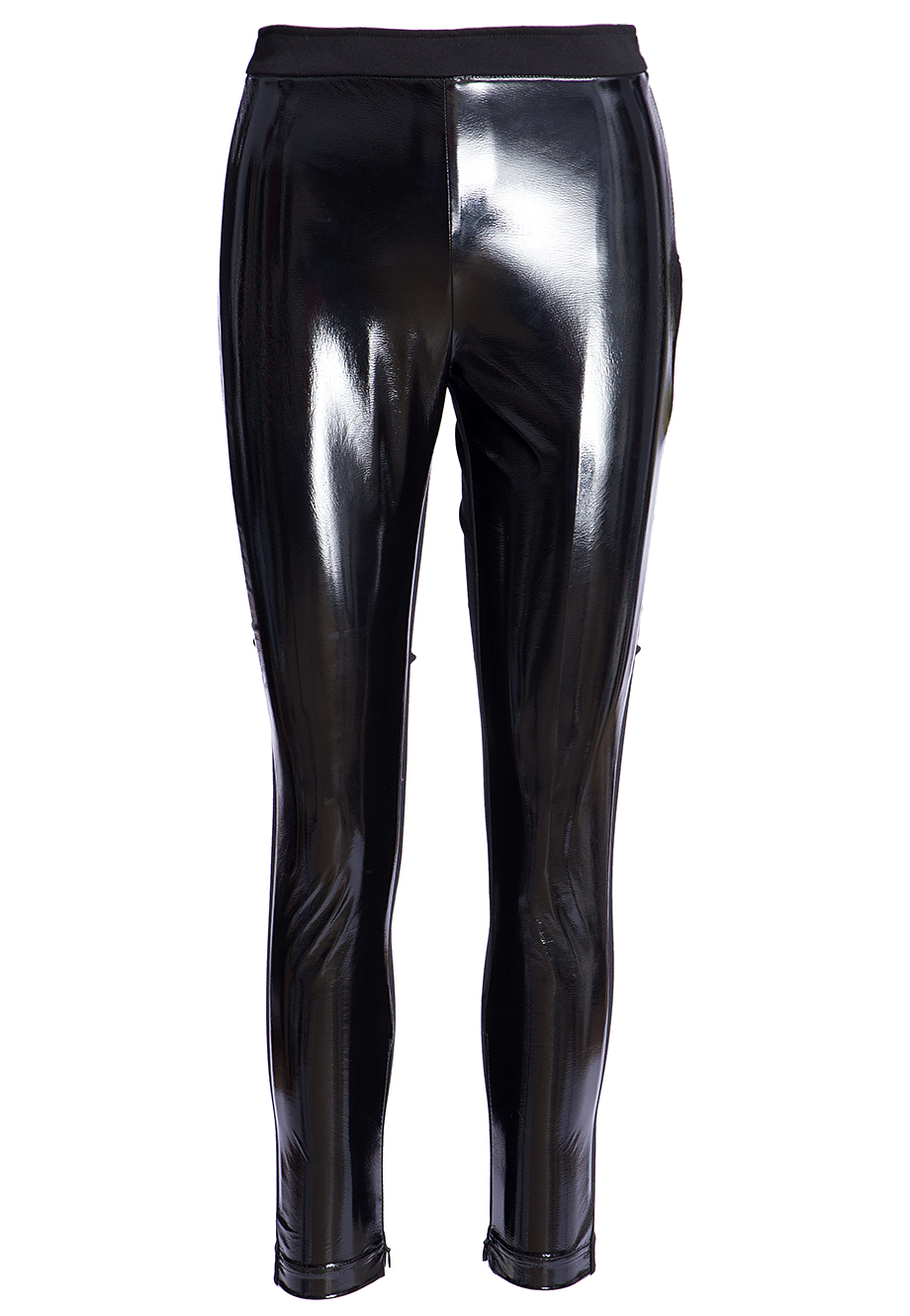 Детали: облегающий крой, высокая посадка, эластичный пояс, сзади два прорезных кармана с рантом, передние элементы из винила.