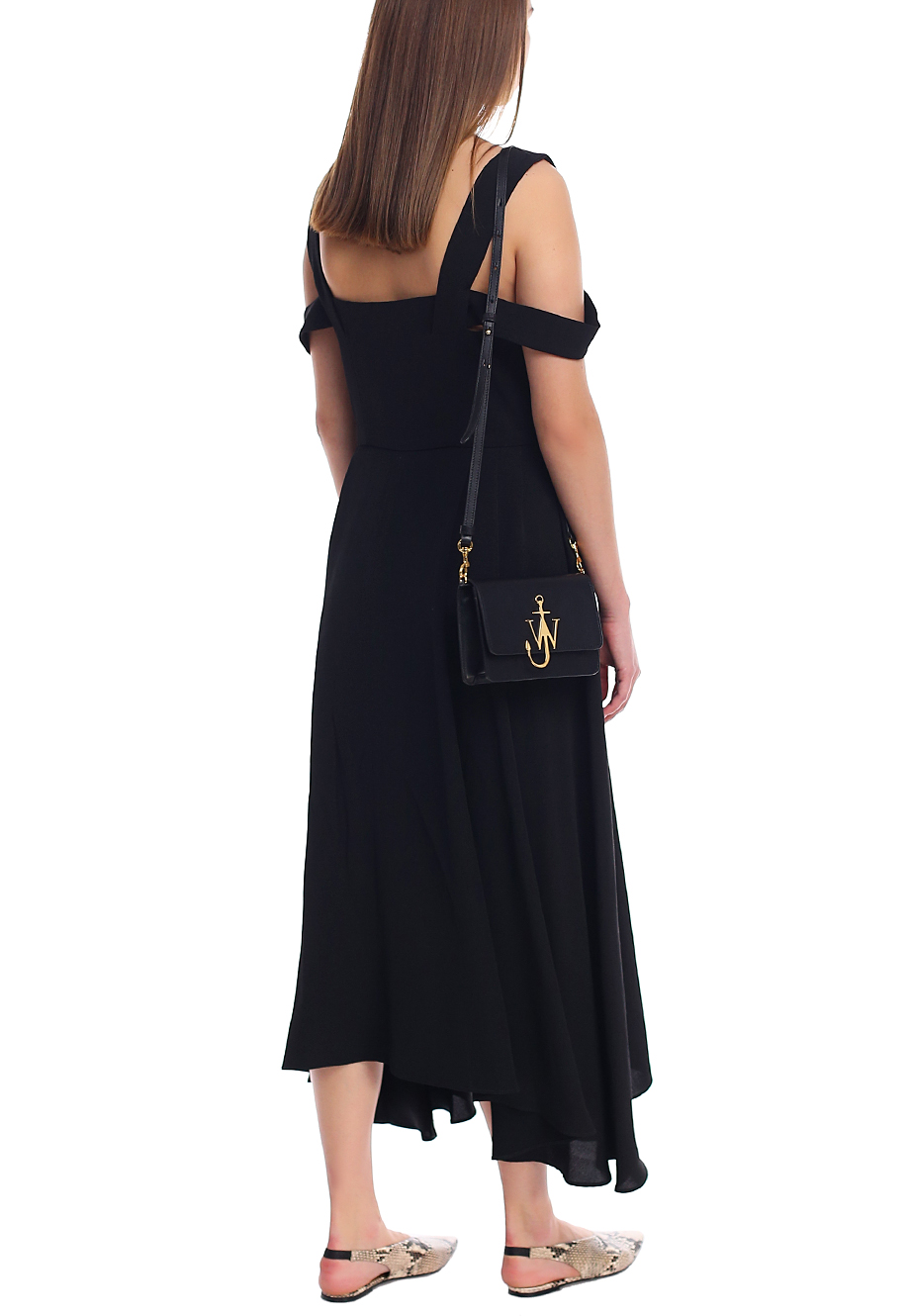 Детали: двойные лямки, отрезная линия талии, юбка асимметричной длины, планка с рядом пуговиц.