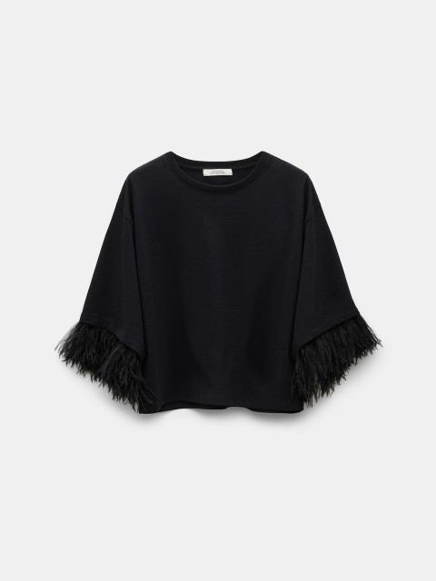 Як і більшість колекцій, весняно-літня від Dorothee Schumacher має широкий вибір чорного вбрання. Це позачасовий колір, що завжди попереду трендів і тенденцій. До елегантної капсули увійшов стильний топ з бахромою, що ідеально комбінується зі штанами кльош.