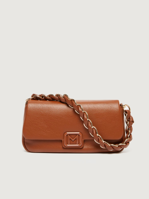 Логотип Marella з впізнаваною літерою M вишукано оздоблює клапан сумочки, а ручка-ланцюжок із контрастним шкіряним плетінням створює баланс між сучасним стилем та елегантністю. Ви можете обрати формат на свій смак: багет, класичний прямокутник та міні.