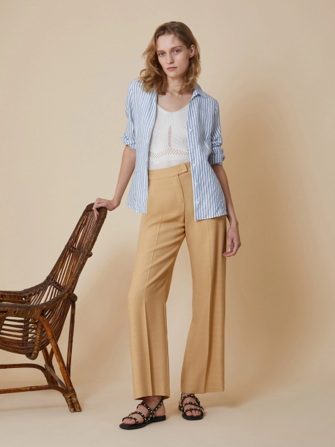 Колекція має в собі різноманітні образи для роботи, що наділені впевненими акцентами. Це класичні ділові костюми з двобортними жакетами та штанами палаццо з подвійними складками. Амплуа варіюються від стриманих класичних костюмів у тонку смужку до сміливих ретро-жакетів в атмосфері 70-х.