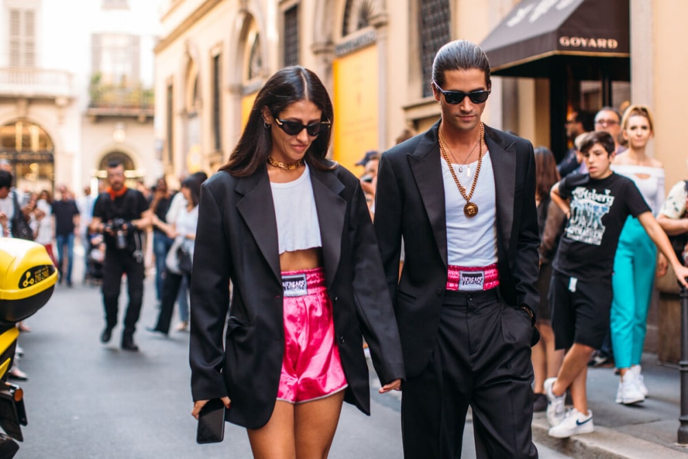 - Єдиний стиль. Пара може виглядати по-різному, але в одному напрямі: кежуал, street style, мінімалізм чи класика. Такий прийом дозволяє підкреслити гармонію без однакових речей.