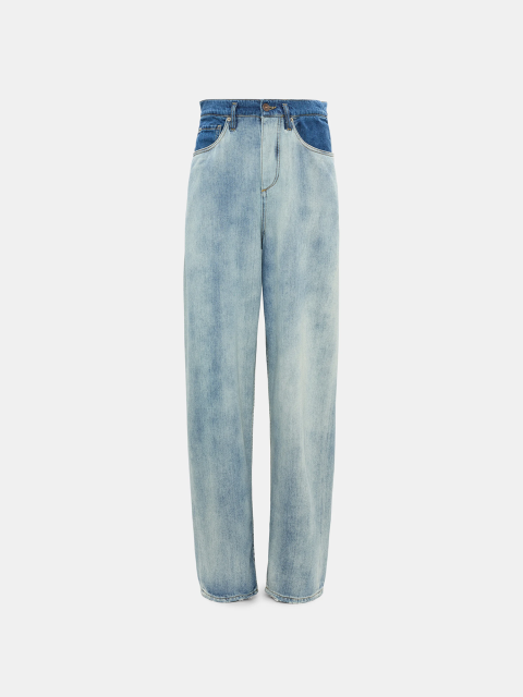У стилі печворк. Це техніка зашивання дірок клаптиками тканини. Джинси печворк ніби зшиті з різних шматочків деніму. Кожен квадратик має свій колір та текстуру. Такі джинси нагадують клаптикову ковдру. Вони вписуються в естетику бохо та стиль 2000-х.