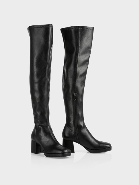 Модель з квадратним мисом виглядає сучасно і трохи графічно. Це тренд, який додає образу чітких ліній і впевненості. Такі чоботи доречні як в повсякденних, так і в вечірніх образах.