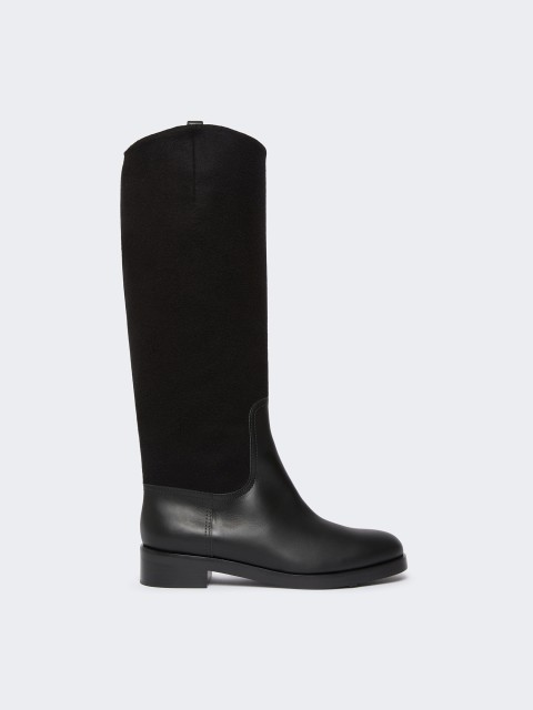 Якщо чоботи з лакової шкіри, образ краще підтримати матовими тканинами. Замшеві моделі, навпаки, красиво поєднуються з вовною і денімом. Такий контраст робить наряд живим і природним.