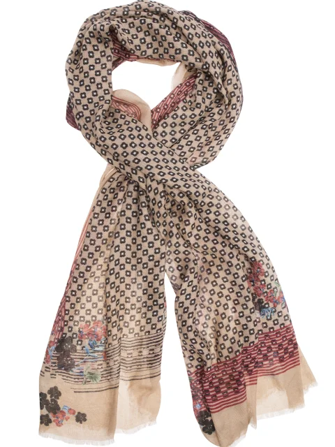 Детали: квадратная форма, геометрический орнамент, цветочный узор по кромке, бахрома.