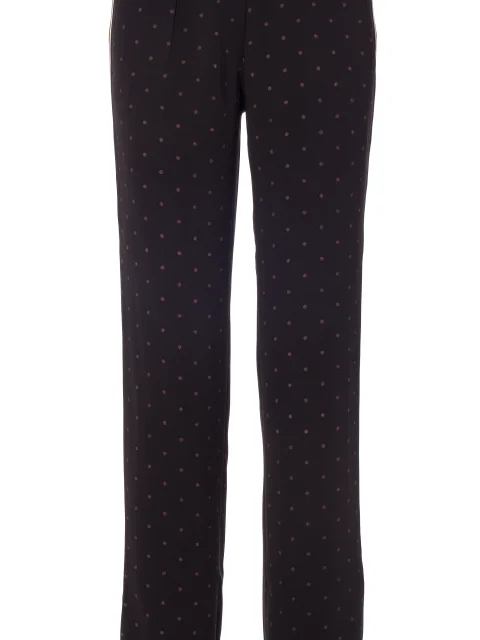 Детали: брюки зауженного кроя с тонкими светлыми лампасами, эластичный пояс для максимального комфорта, боковые французские карманы и прорезные задние, внизу на брючинах небольшие разрезы.
