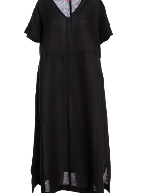 Детали: А-силуэт, V-образная форма декольте, отрезная линия талии, цельнокроеный короткий рукав, по боковым швам прорезные карманы, разрезы.
