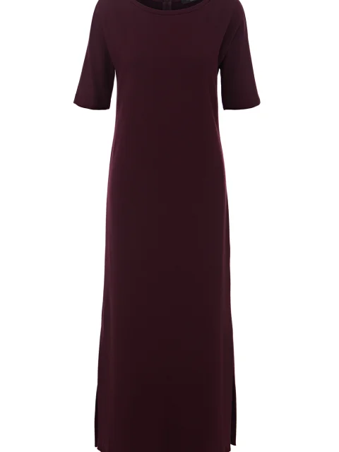 Детали: прямой крой, вырез горловины лодочкой, втачной рукав длиной до локтя, боковые разрезы. Застегивается на спинке потайной молнией.