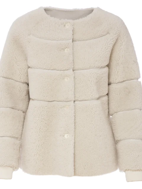 Детали: прямой крой, круглый вырез горловины, рукав собранный трикотажным манжетом. Застегивается рядом пуговиц. Выстриженные поперечные полосы.