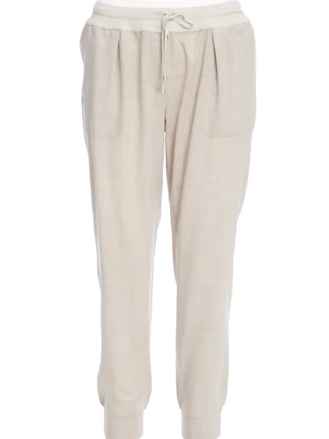 Детали: прямой крой, собранный книзу эластичной манжетой, французские боковые карманы, сзади прорезные с рантом, эластичный пояс с кулиской, меланжевый материал.