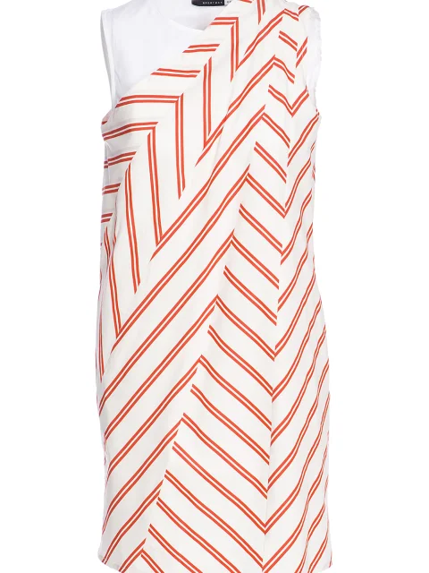 Детали: прямой крой клиньями, круглый вырез горловины, без рукавов, прорезные карманы по боковым швам, асимметричная вставка над грудью. Дополнительный платок в тон.