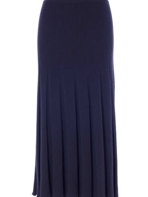 Детали: А-силуэт, фактурная вязка в рубчик, неширокий эластичный пояс, средняя посадка. От середины бедра расходятся складки.