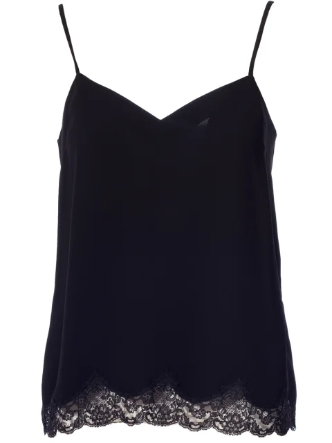Детали: прямой крой, тонкие  регулируемые бретели, V-образный вырез декольте, фигурный край с французским кружевом.