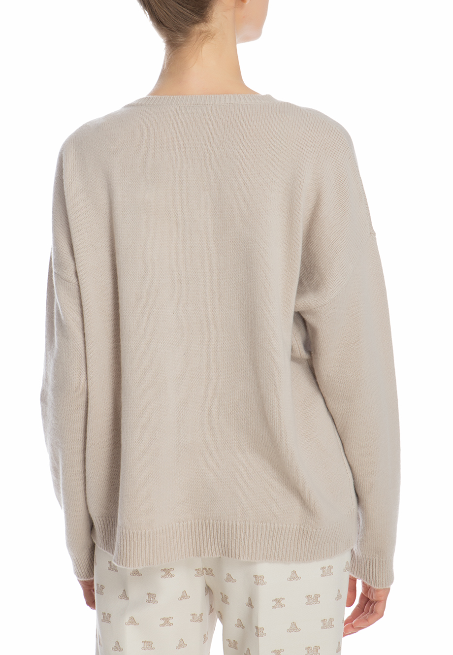 Детали: овальный крой, круглый вырез горловины, спущенный длинный рукав, резинка по нижнему краю и на рукавах, на груди эмблема.