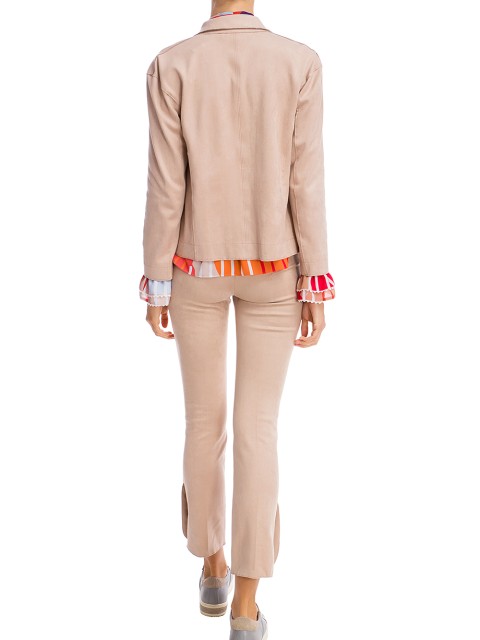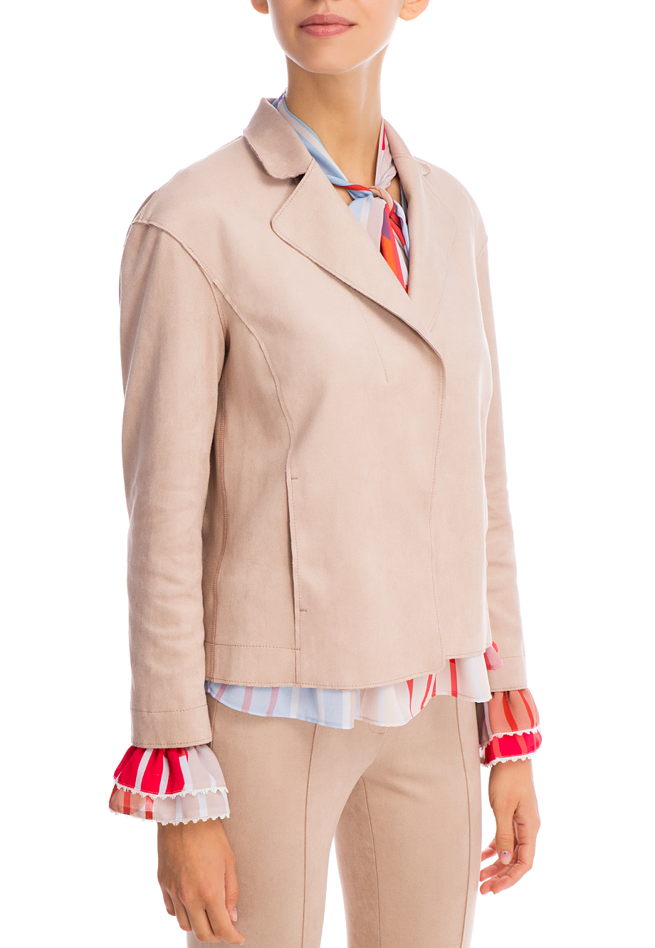 Детали: прямой крой, ворот на косую с лацканами, длинный втачной рукав, прорезные карманы по бокам, наружная отделка швов.