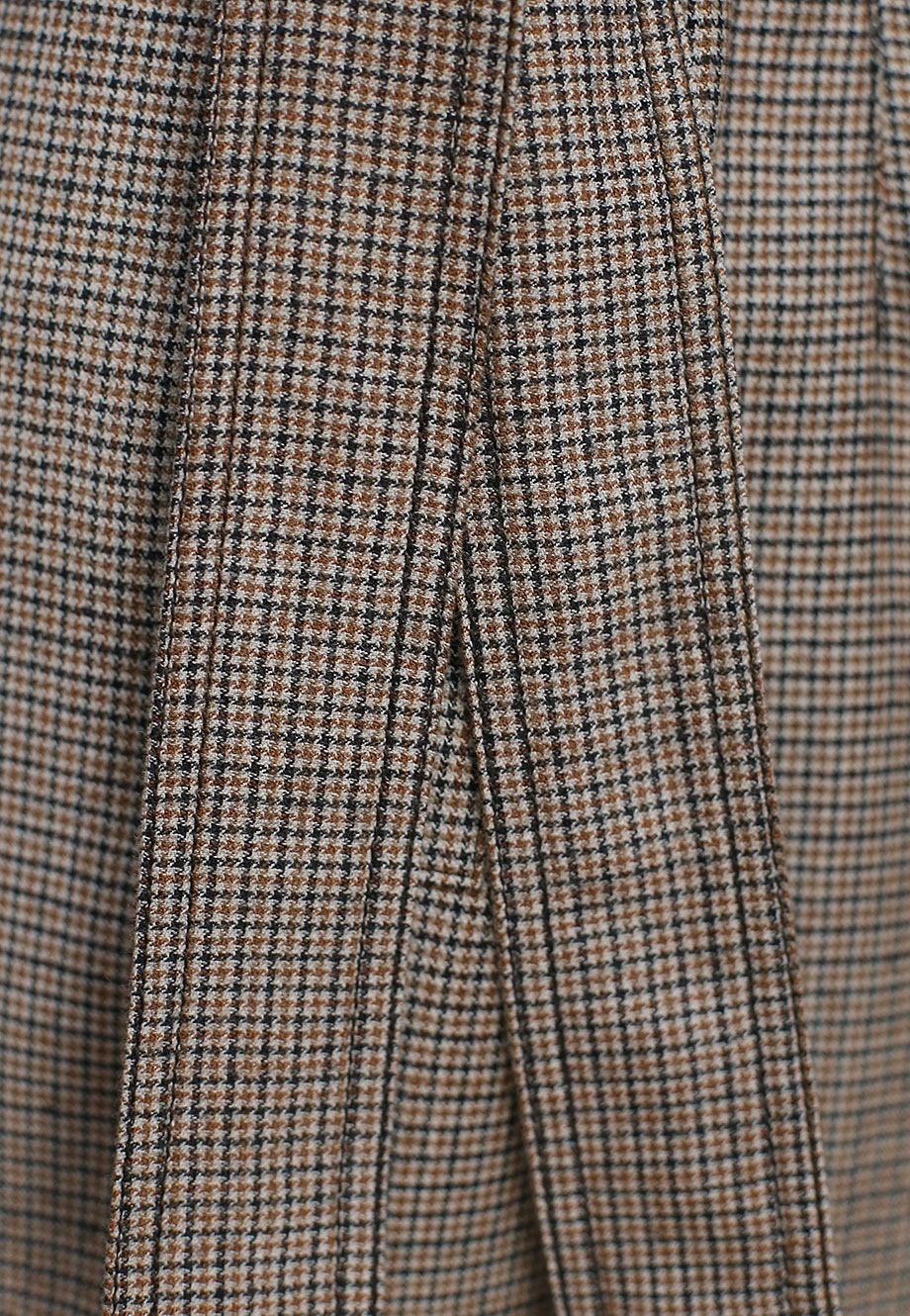 Прямий крій з поясом, відкладний комір з планкою, вкорочений зпущений рукав, пояс по лінії талії, довжина вище коліна. Макропринт у клітинку.