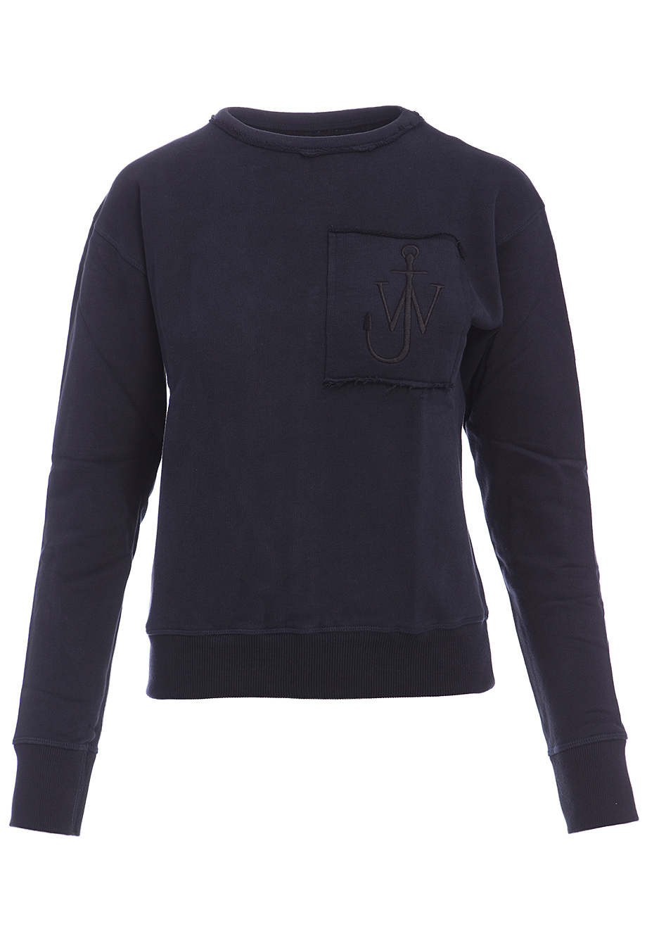 Детали: прямой крой, круглый вырез горловины, спущенный длинный рукав, собранный эластичной манжетой, нагрудный карман с эмблемой. Манжета по нижнему краю.