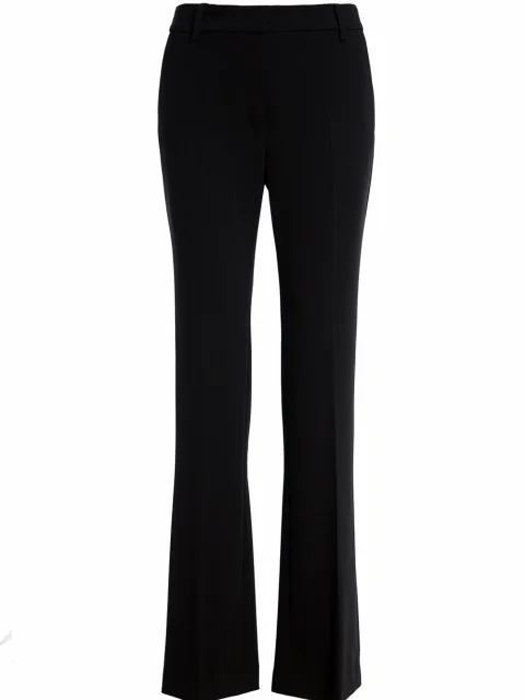 Детали: крой клёш от колена, высокая посадка, французские боковые карманы, два прорезных с рантом сзади, стрелки вдоль штанин.