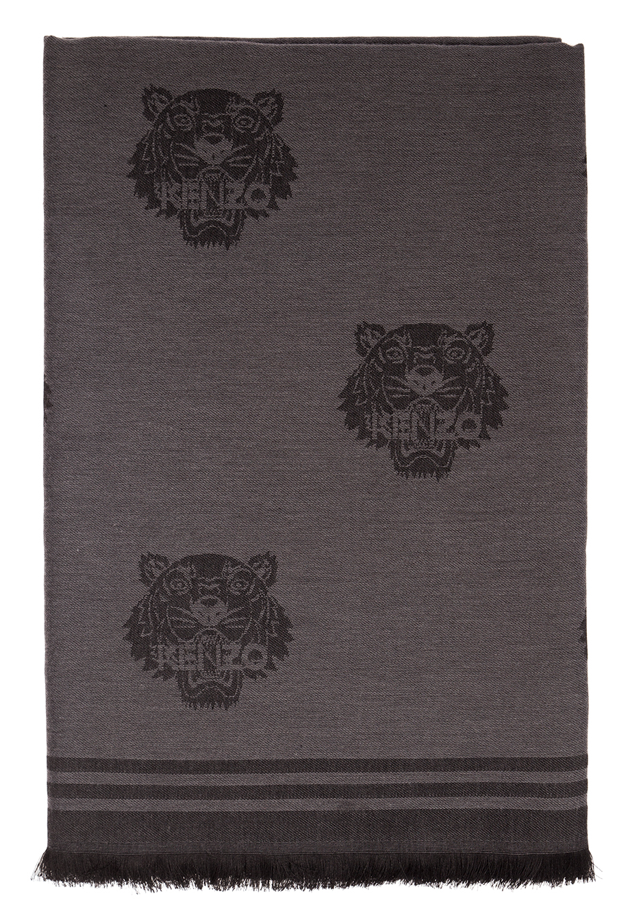 Детали: квадратная форма, жаккардовое плетение, принт Tiger, бахрома по кромке.