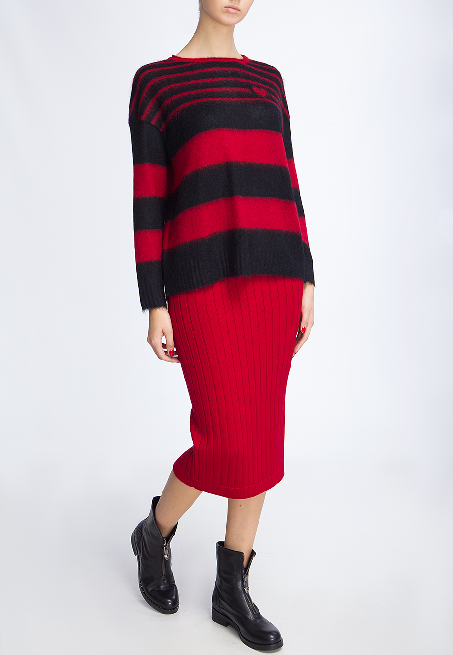 Детали: прямой свободный крой, круглый вырез горловины, спущенный длинный рукав, принт в полоску, сердечко на груди.