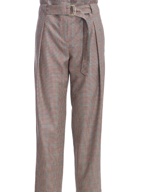 Детали: традиционный крой с защипами, прорезные карманы по боковым швам, сзади два прорезных с рантом, затяжной пояс по линии талии, длина ⅞.
