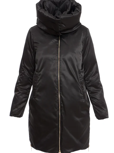 Детали: овальный крой, высокий ворот, капюшон, прорезные карманы с рантом, длинный втачной рукав, сатиновая фактура наружного материала, металлические молнии по боковым швам. Утеплитель – пух/перо (90/10%).