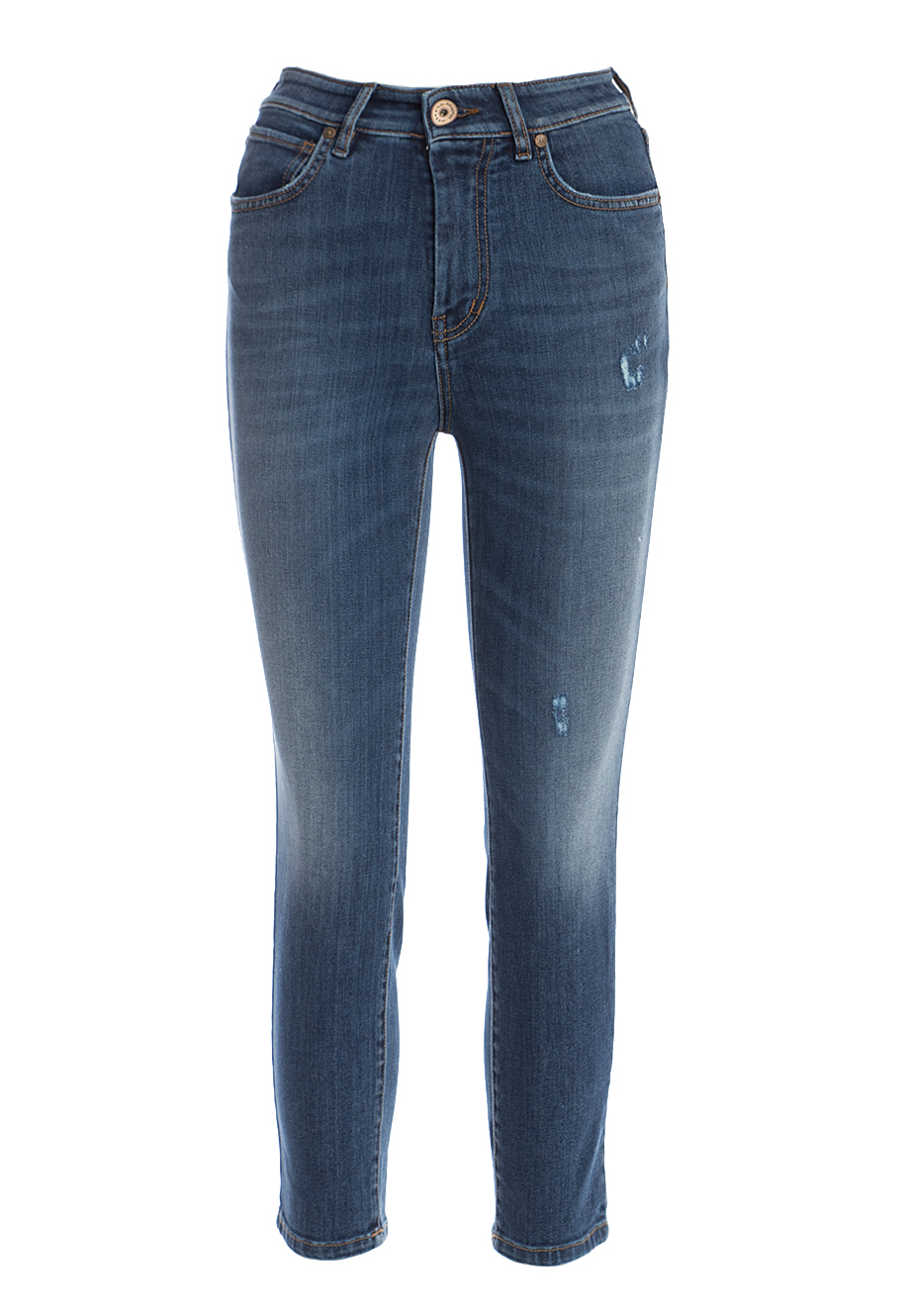 Детали: облегающий укороченный крой, пять традиционных карманов, контрастная строчка коричневого цвета, потертости. Пояс со шлевками для ремня, пуговица, ширинка.