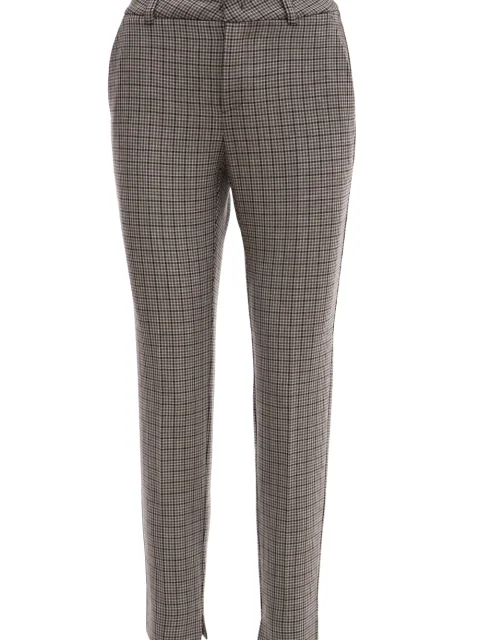 Детали: традиционный крой, слегка зауженный книзу, высокая посадка, французские боковые карманы, сзади два прорезных с рантом, пояс со шлевками для ремня, пуговица, ширинка. Принт – микроклетка.