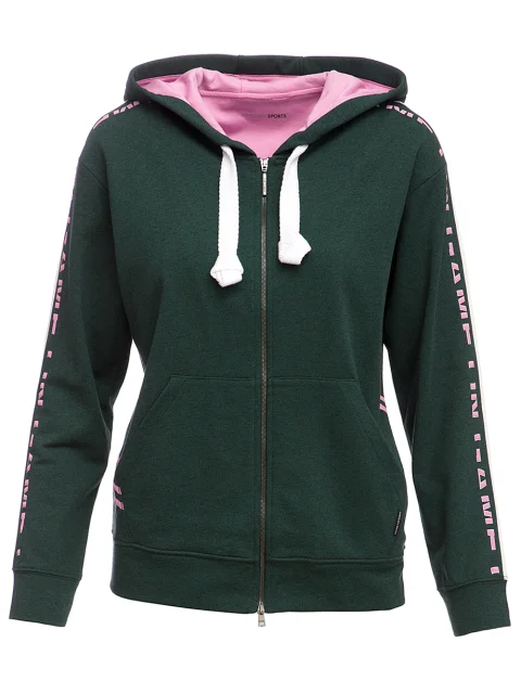 Детали: прямой крой, ворот с капюшоном на кулиске, накладные карманы-карго, длинный втачной рукав с лампасами, манжета по нижнему краю и на рукавах, декоративные нашивки на спинке. Застёжка молнией.
