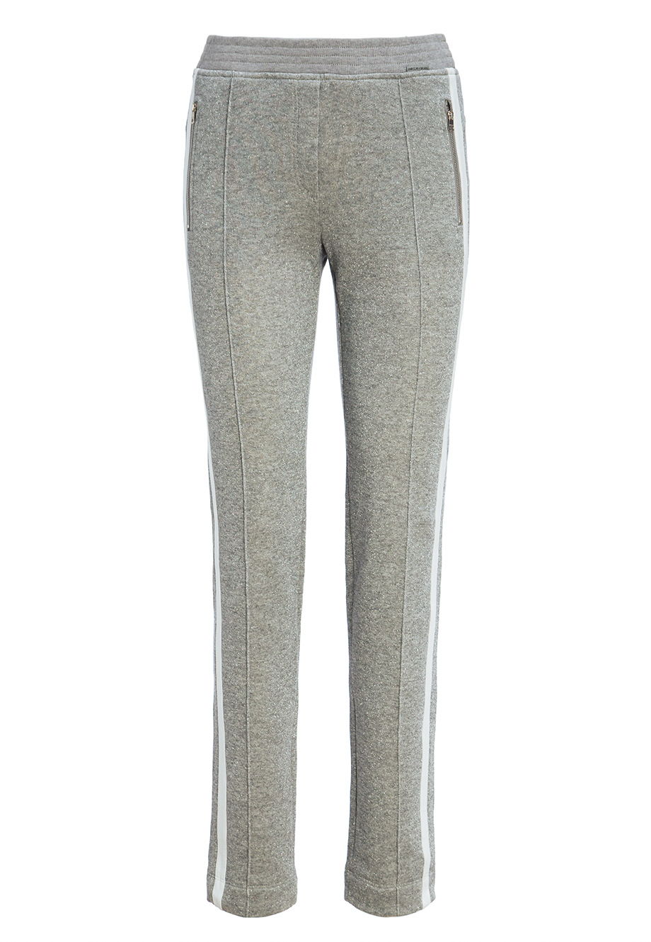 Детали: прямой крой, средняя посадка, пояс на кулиске с резинкой, боковые карманы на молниях, контрастные лампасы.