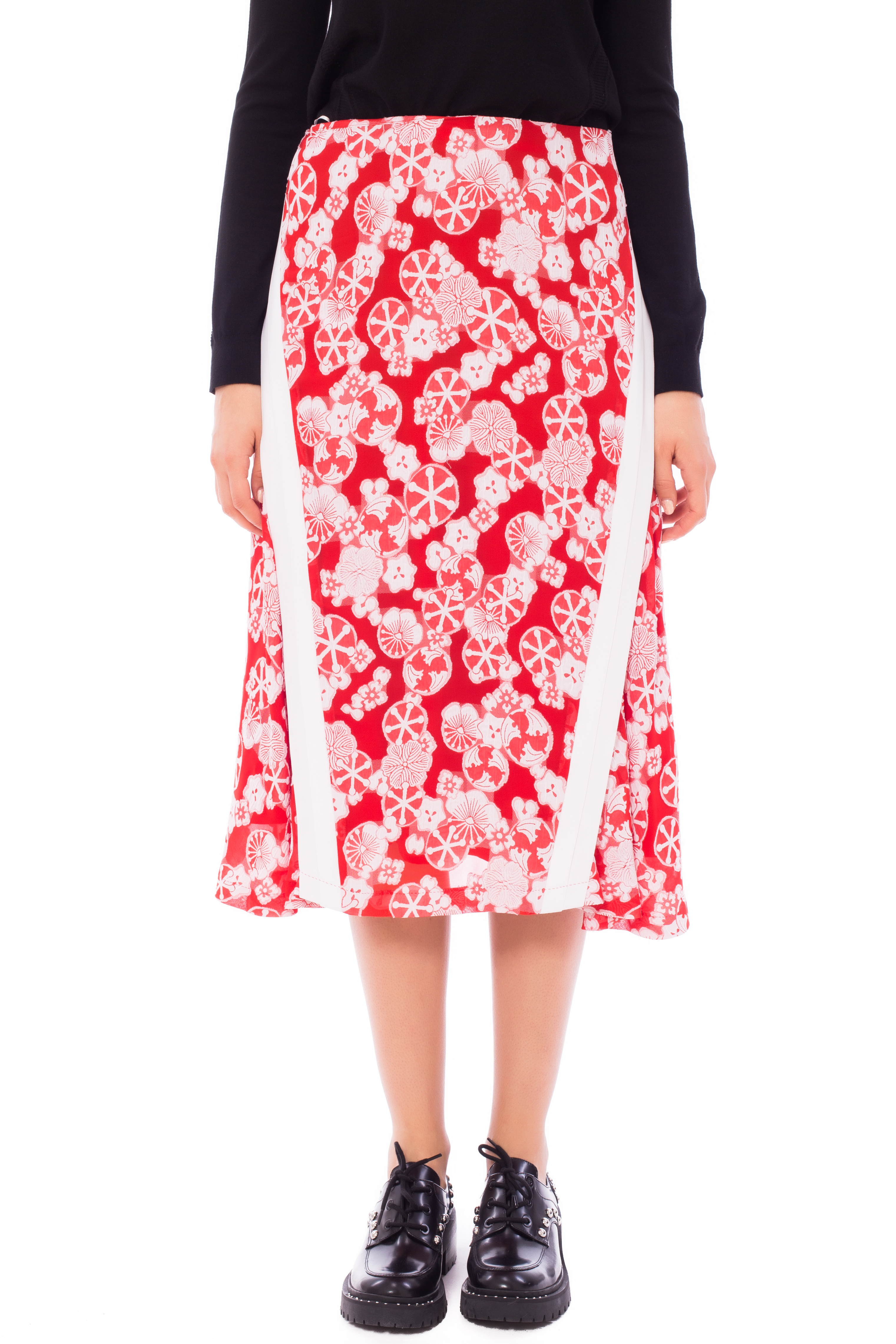 Детали: модель «трапеция» из принтованного жаккарда, высокая посадка на талии, сзади потайная застежка-молния. Цветочный принт вдохновлен работами культового японского художника и иллюстратора Кейчи Танаами