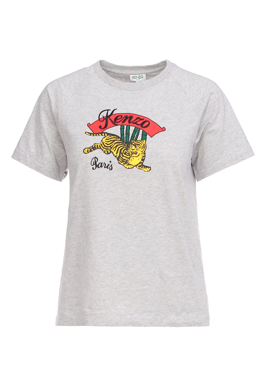 Детали: прямой крой, круглый вырез горловины, короткий рукав реглан, принт на груди.