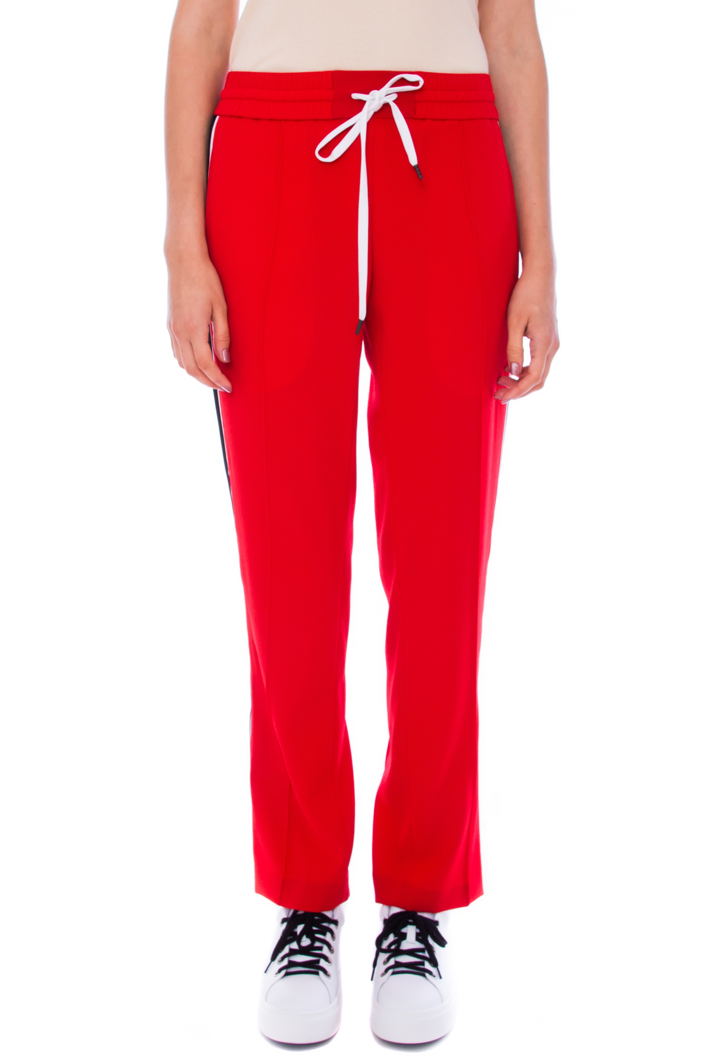 Брюки в спортивном стиле с двумя контрастными полосами по бокам. Эластичный пояс на шнуровке и боковые французские карманы для максимального комфорта.