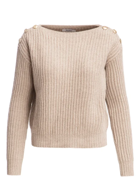 Детали: прямой крой, круглый вырез горловины, длинный втачной рукав, декоративные пуговицы по плечевому шву, фактурный узор вязки.