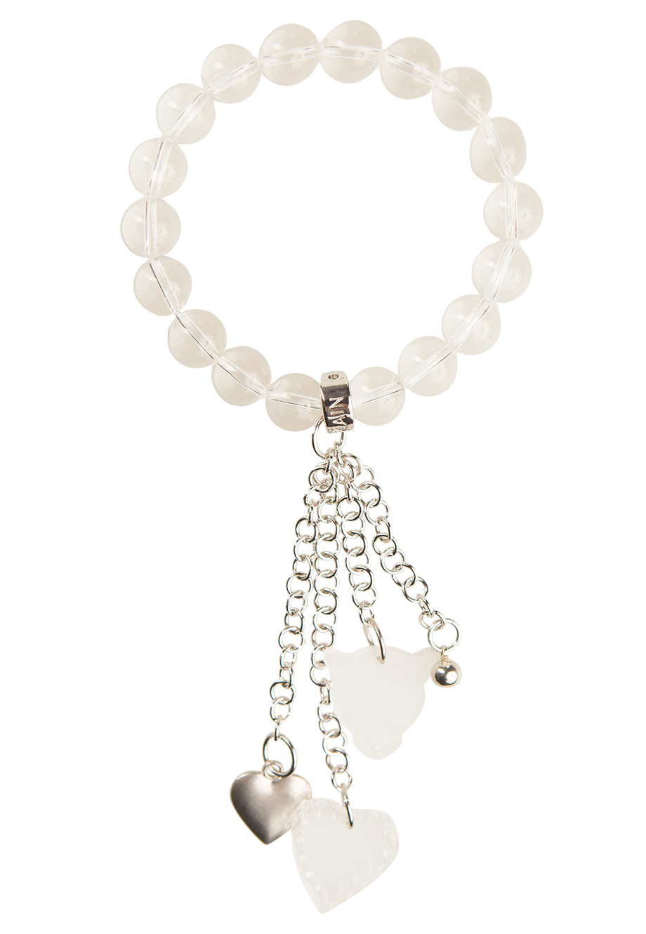 Детали: прозрачные бусины на эластичной нити, подвески с фирменными шармами.