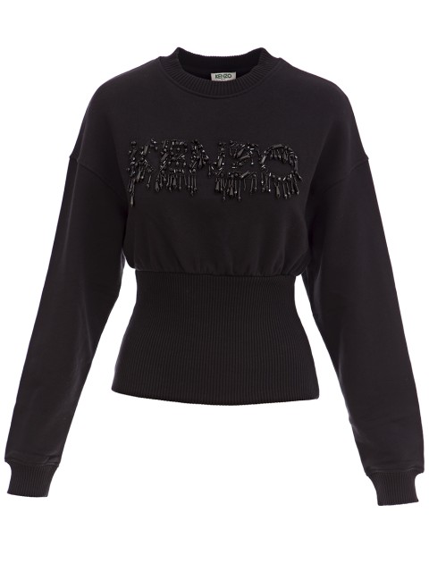 Детали: свободный крой, плотная манжета до линии талии, круглый вырез горловины, спущенный длинный рукав, собранный манжетой. На груди вышивка Kenzo бисером и бусинами.