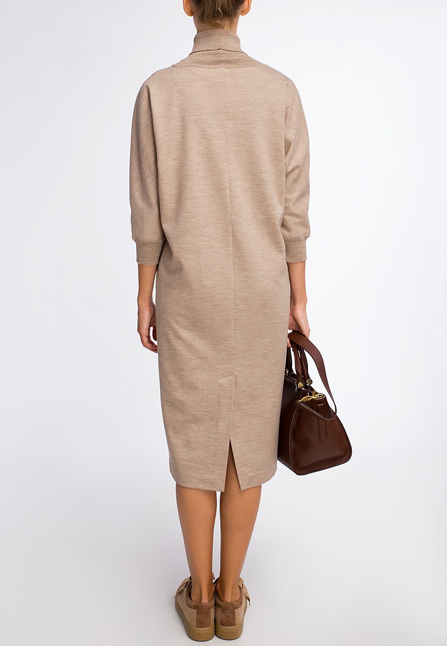 Детали: прямой крой, высокий ворот с отворотом, цельнокроеный рукав длиной ¾ с манжетой. Шлица на спинке.