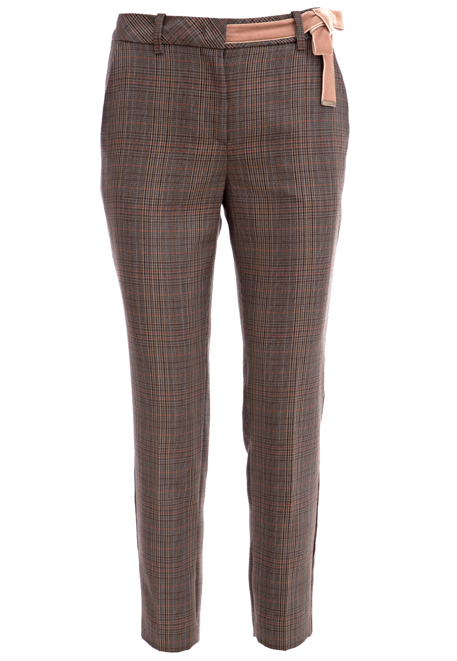 Детали: прямой крой, высокая посадка, французские боковые карманы, сзади два прорезных с рантом, длина 7/8. Пояс со шлевками для ремня, пришивной бархатной лентой. Скрытый крючок, ширинка.