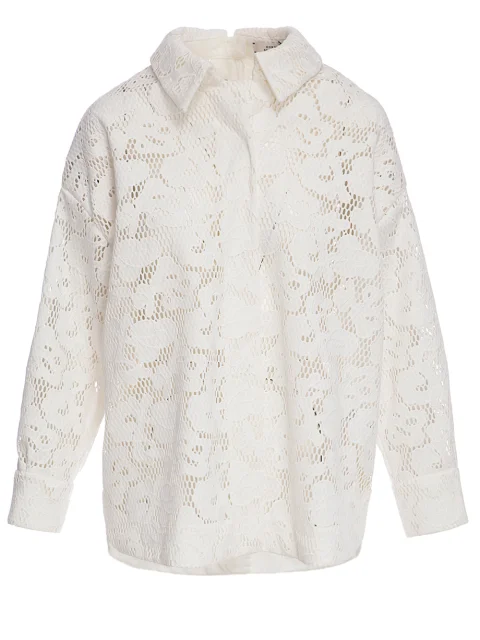 Детали: прямой свободный крой, отложной воротник, длинный втачной рукав с манжетой на пуговице, планка со скрытой застёжкой.