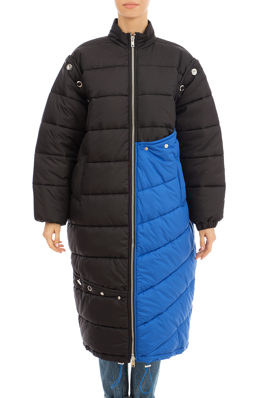 Детали: овальный крой, высокий ворот, длинный втачной рукав, отстегивающийся кнопками, прорезные карманы по бокам, кулиска по нижнему краю. Комбинация двух цветов.
