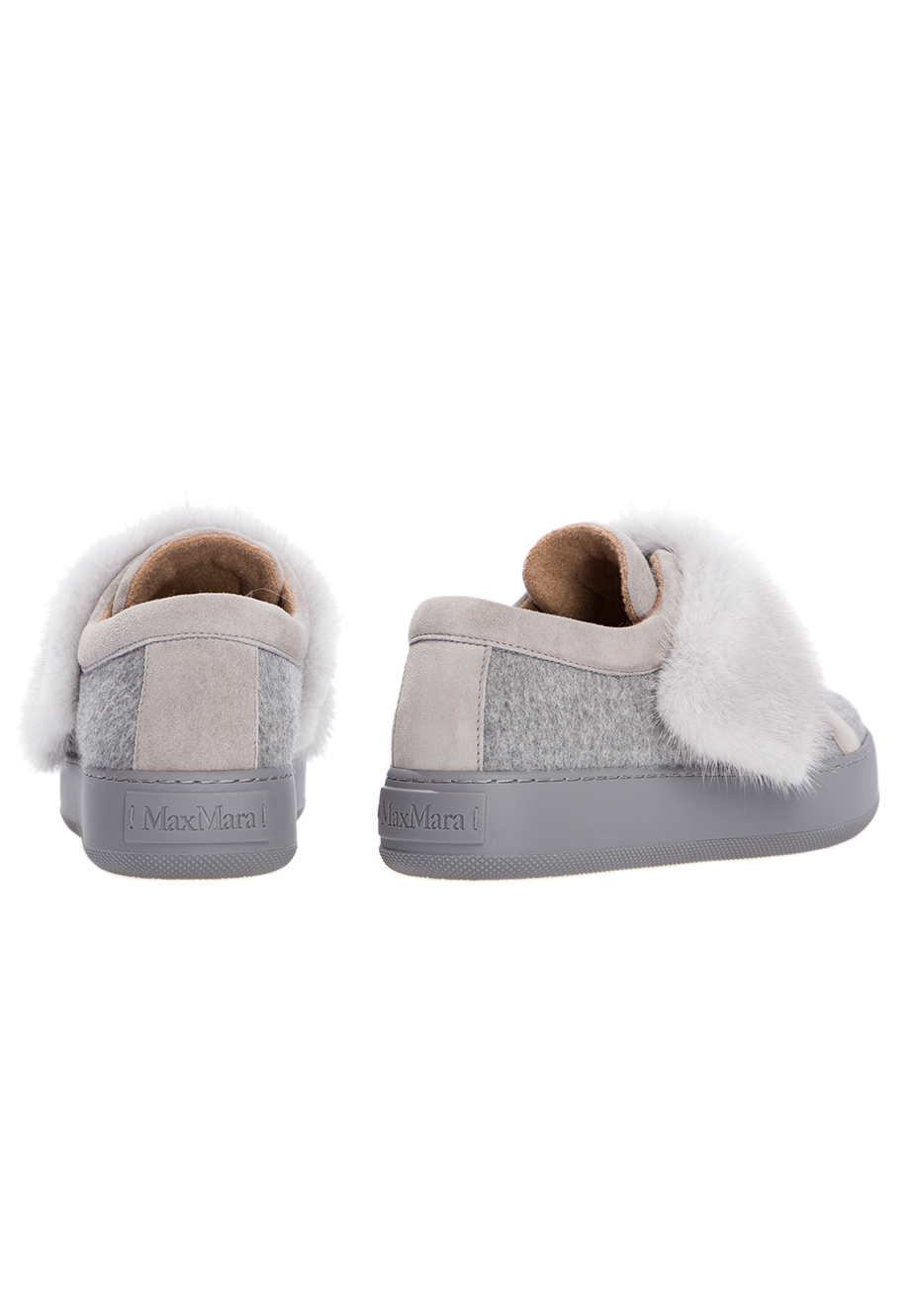 Детали: закруглённый носок, прямая подошва высотой 2 см, отделка кожаным кантом, союзка с отделкой из меха норки.