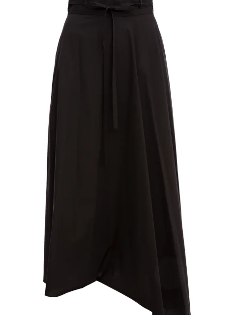 Детали: А-силуэт, высокая посадка, крупная сборка, асимметричный подол, тонкий ленточный пояс в шлёвках. Застёгивается на спинке потайной молнией.
