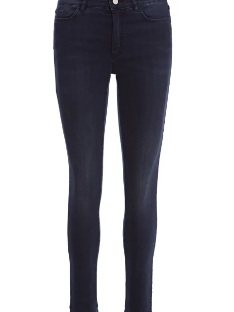 Детали: плотно облегающий крой, средняя посадка, пять традиционных карманов, пояс со шлевками для ремня, пуговица, ширинка.