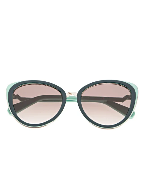 Детали: форма «кошачьи глаза», двойная оправа в прозрачном и глянцевом пластике, линзы с затемнением и фактором защиты 2’’ – повседневный.